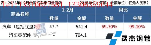 免責(zé)聲明:本網(wǎng)站(山東聊城晟杰無縫鋼管廠m.maturesexus.com)刊載的“海關(guān)總署:1-2月中國出口汽車47.7萬輛,同比增69.70%”等均源于網(wǎng)絡(luò),版權(quán)歸原作者所有,且僅代表原作者觀點(diǎn),本文所載信息僅供參考。轉(zhuǎn)載僅為學(xué)習(xí)與交流之目的,如無意中侵犯您的合法權(quán)益,請及時(shí)聯(lián)系刪除。本網(wǎng)站刊登此篇文章并不意味著本站贊同其觀點(diǎn)或證實(shí)其內(nèi)容的真實(shí)性,我們不對其科學(xué)性、嚴(yán)肅性等作任何形式的保證。如果侵犯了您的版權(quán),請盡快聯(lián)系我們予以撤銷,謝謝合作!