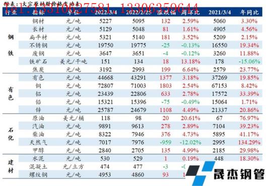 免責聲明:本網站(山東聊城晟杰無縫鋼管廠m.maturesexus.com)刊載的“周報:大宗原材料價格周報(2.28-3.4)”等均源于網絡,版權歸原作者所有,且僅代表原作者觀點,本文所載信息僅供參考。轉載僅為學習與交流之目的,如無意中侵犯您的合法權益,請及時聯系刪除。本網站刊登此篇文章并不意味著本站贊同其觀點或證實其內容的真實性,我們不對其科學性、嚴肅性等作任何形式的保證。如果侵犯了您的版權,請盡快聯系我們予以撤銷,謝謝合作!