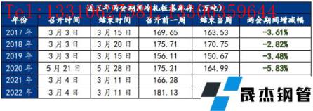 庫(kù)存方面,歷年兩會(huì)期間,冷軋總庫(kù)存都是呈現(xiàn)一個(gè)下降的態(tài)勢(shì),普遍降幅在2%以上,且其庫(kù)存總體水平皆高于當(dāng)年全國(guó)庫(kù)存均值。