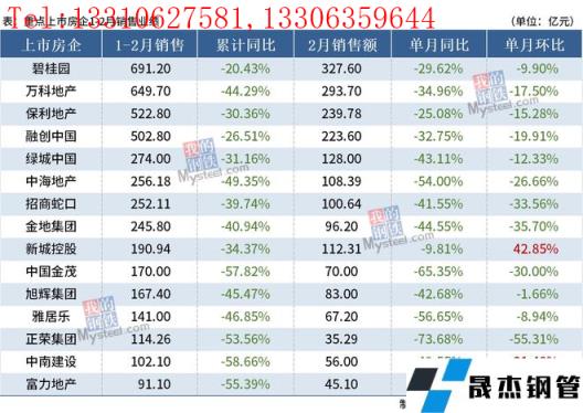 免責聲明:本網站(山東聊城晟杰無縫鋼管廠m.maturesexus.com)刊載的“15家重點房企2月銷售同比降幅擴大,房地產下行壓力持續”等均源于網絡,版權歸原作者所有,且僅代表原作者觀點,本文所載信息僅供參考。轉載僅為學習與交流之目的,如無意中侵犯您的合法權益,請及時聯系刪除。本網站刊登此篇文章并不意味著本站贊同其觀點或證實其內容的真實性,我們不對其科學性、嚴肅性等作任何形式的保證。如果侵犯了您的版權,請盡快聯系我們予以撤銷,謝謝合作!