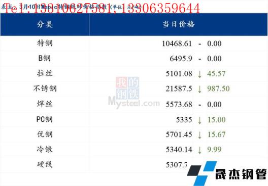 3月10日普鋼絕對價格指數(shù)變化:綜合指數(shù)5227.06,下跌43.55;螺紋鋼指數(shù)4971.9,下跌33.77;線材指數(shù)5306.03,下跌36.04;熱軋板卷指數(shù)5126.23,下跌55.04;冷軋板卷指數(shù)5596.4,下跌42.23;中厚板指數(shù)5202.78,下跌39.65。