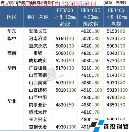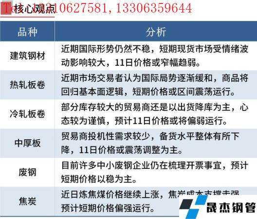 建筑厚壁無縫鋼管:3月10日,全國31個主要城市20mm三級抗震螺紋鋼均價4961元/噸,較上個交易日下跌34元/噸。本周供給繼續小增,庫存迎來拐點,且降幅尚可。綜合來看,目前供給仍然處于回升階段,但整體增量有限;需求方面,隨著天氣逐漸好轉,需求有所回升。考慮到近期國際形勢仍然不穩,短期現貨市場受情緒波動影響較大。因此預計11日國內建筑厚壁無縫鋼管價格將繼續窄幅趨弱為主。