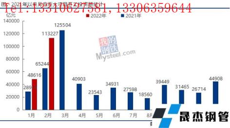 2月春節以來,全國迎來開工潮,甘肅、吉林、山東、陜西、湖北、浙江、湖南、江西、云南、福建等10省相繼舉行省級重大項目集中開工活動。據不完全統計,2022年2月,全國各地共開工20459個項目,總投資額11.3萬億,2月開工項目數量環比增208.4%,總投資額環比增132.9%,同比增73.5%。