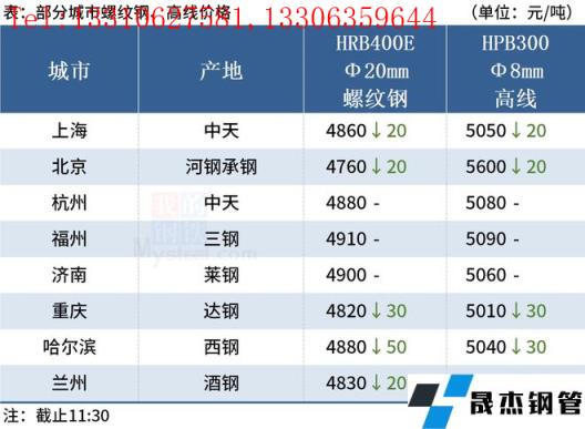 ◎上海:15日早盤建材市場價格下跌20。現螺紋4790-4830,西城抗震4820,其他4650-4710,興鑫抗震4720,聯鑫黃海抗震4730,盤螺4930-5050,高線亞新4840。(單位:元/噸)