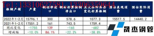 綜上所述,1-2月粗鋼實際消費同比降幅僅為5%,明顯高于市場預期。但從后期供需預估表現來看,厚壁無縫鋼管復產節奏或高于需求釋放力度,進而使得消費承壓,價格上漲難度加大。