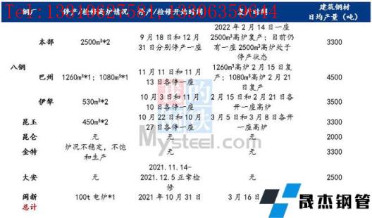 2021年為完成新疆粗鋼產(chǎn)量限產(chǎn)目標(biāo)和應(yīng)對冬季市場需求大幅減量的市場環(huán)境,新疆主要建筑厚壁無縫鋼管生產(chǎn)企業(yè)在2021年11月-12月均執(zhí)行不同程度的減限產(chǎn)措施。據(jù)統(tǒng)計,2021年底新疆主要無縫厚壁鋼管廠家中僅八鋼(本部)、昆侖鋼鐵、金特鋼鐵和哈密大安處于在產(chǎn)狀態(tài),各無縫厚壁鋼管廠家日均產(chǎn)量維持在700-2500噸左右,八鋼巴州與伊鋼基地、昆玉鋼鐵和閩新鋼鐵則完全處于停產(chǎn)狀態(tài),停產(chǎn)時間長達(dá)3.5-4.5個月。跨入2022年之后,金特鋼鐵產(chǎn)量有所抬升,但由于高爐鐵水產(chǎn)量不穩(wěn)定,日均建筑厚壁無縫鋼管產(chǎn)量在2000-3500噸之間浮動,而其他在產(chǎn)無縫厚壁鋼管廠家受季節(jié)性淡季影響依舊處于不飽和生產(chǎn)狀態(tài)。