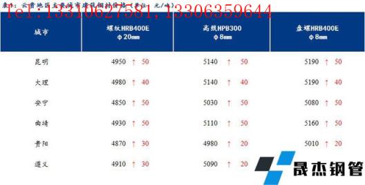 【今日價格】從云貴主要城市建筑厚壁無縫鋼管價格來看,今日云南建筑厚壁無縫鋼管市場價格上漲40-50元/噸,貴州建筑厚壁無縫鋼管市場價格上漲20-30元/噸。