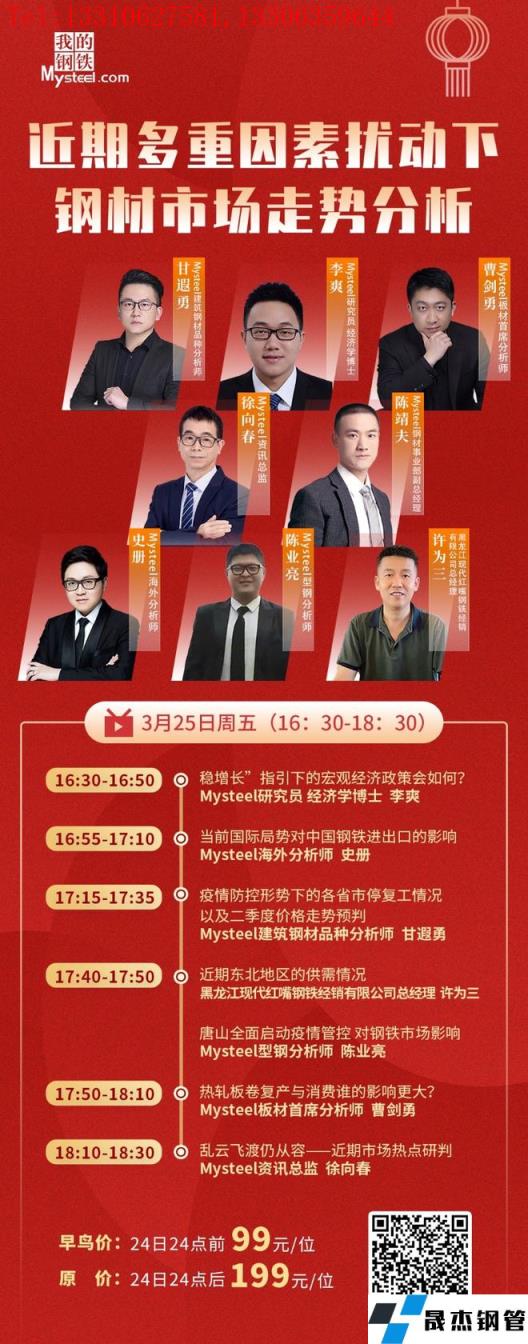 3月25日周五下午16:30,黑龍江現代紅嘴鋼鐵經銷有限公司總經理許為三、資訊總監徐向春、經濟學博士研究員李爽、板材首席分析師曹劍勇、建筑厚壁無縫鋼管品種分析師甘遐勇、型鋼分析師陳業亮及國際鋼鐵市場分析師史冊,將做客直播間,聊一聊近期多重因素擾動下對鋼鐵市場的影響有哪些?
