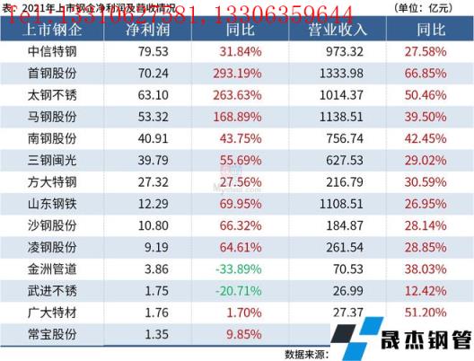 免責聲明:本網站(山東聊城晟杰無縫鋼管廠m.maturesexus.com)刊載的“14家上市鋼企2021年實現凈利超410億元”等均源于網絡,版權歸原作者所有,且僅代表原作者觀點,本文所載信息僅供參考。轉載僅為學習與交流之目的,如無意中侵犯您的合法權益,請及時聯系刪除。本網站刊登此篇文章并不意味著本站贊同其觀點或證實其內容的真實性,我們不對其科學性、嚴肅性等作任何形式的保證。如果侵犯了您的版權,請盡快聯系我們予以撤銷,謝謝合作!
