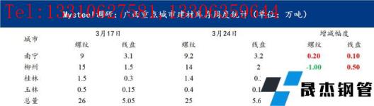 圖表一:廣西重點城市建材庫存周度統計