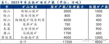 對于以上納入市政府2022年工作報告中的鐵礦項目,調研匯總了這些項目的產能信息: