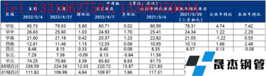 庫存方面:據統計,建材方面,以螺紋鋼為例,從三大區域來看,本周華東和南方分別環比增加8.5萬噸和5.2萬噸,北方環比減少10.08萬噸;從七大區域來看,除華北、東北和西北,其余各區域均有不同程度增加。從城市來看,杭州、南京、南昌、武漢等為主要增庫城市,北京、蘭州、貴陽等為主要降庫城市。其中國內主要城市螺紋鋼、線材總庫存為1096.69萬噸,較上周(2022年4月29日)增加2.18萬噸,增幅為0.20%。同比減少30.10萬噸或減幅為0.20%。