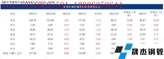 表1:全國建筑厚壁無縫鋼管庫存匯總(4.8-4.15)