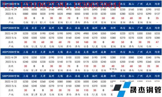 表5:全國主要城市H型鋼價格匯總(2022-4.29-2022-5.6)
