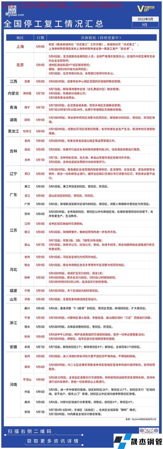 免責(zé)聲明:本網(wǎng)站(山東聊城晟杰無縫鋼管廠m.maturesexus.com)刊載的“疫情影響丨全國(guó)停工復(fù)工情況匯總(5月9日)”等均源于網(wǎng)絡(luò),版權(quán)歸原作者所有,且僅代表原作者觀點(diǎn),本文所載信息僅供參考。轉(zhuǎn)載僅為學(xué)習(xí)與交流之目的,如無意中侵犯您的合法權(quán)益,請(qǐng)及時(shí)聯(lián)系刪除。本網(wǎng)站刊登此篇文章并不意味著本站贊同其觀點(diǎn)或證實(shí)其內(nèi)容的真實(shí)性,我們不對(duì)其科學(xué)性、嚴(yán)肅性等作任何形式的保證。如果侵犯了您的版權(quán),請(qǐng)盡快聯(lián)系我們予以撤銷,謝謝合作!