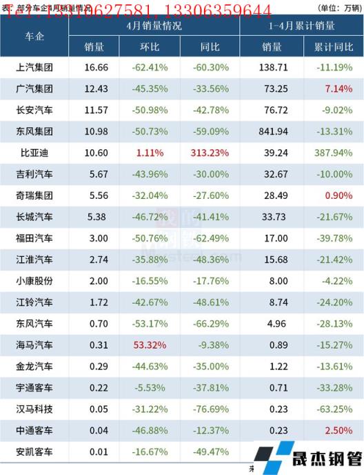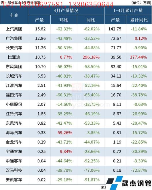 免責聲明:本網站(山東聊城晟杰無縫鋼管廠m.maturesexus.com)刊載的“4月19家車企銷量出爐,超九成同比大降”等均源于網絡,版權歸原作者所有,且僅代表原作者觀點,本文所載信息僅供參考。轉載僅為學習與交流之目的,如無意中侵犯您的合法權益,請及時聯系刪除。本網站刊登此篇文章并不意味著本站贊同其觀點或證實其內容的真實性,我們不對其科學性、嚴肅性等作任何形式的保證。如果侵犯了您的版權,請盡快聯系我們予以撤銷,謝謝合作!
