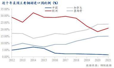 拜登此次提到的取消關(guān)稅,針對的是2018年7月后開始的“懲罰性”關(guān)稅,與鋼鐵關(guān)稅有所區(qū)別,除非宣布同時取消,否則只會間接影響國內(nèi)厚壁無縫鋼管市場。根據(jù)美國商務(wù)部公布數(shù)據(jù)顯示,近十年來美國厚壁無縫鋼管進(jìn)口量在2000萬噸—4000萬噸之間,歐洲、加拿大、墨西哥為美國前三大厚壁無縫鋼管進(jìn)口國,而來自中國的進(jìn)口比例并不高。從圖中可以看出,2018年美國加征鋼鐵關(guān)稅以后,來自歐洲的進(jìn)口比例有所下降,加拿大、墨西哥的進(jìn)口比例有所上升,而中國的進(jìn)口比例變化不大。即使后期鋼鐵關(guān)稅取消,國內(nèi)對美厚壁無縫鋼管出口影響有限。