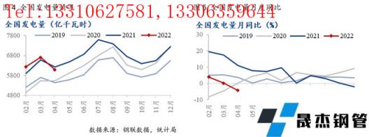 2022年4月份,全國生產(chǎn)原煤同比增長10.7%。4月我國進口煤同比增長8.4。4月我國用電同比增速回落1.3%,主要是受第二、三產(chǎn)業(yè)用電量同比下滑拖累,發(fā)電量同比下降4.3%。2022年4月以來(截至4月27日),全國平均氣溫為12.4℃,較常年同期偏高1.3℃,為1961年以來同期第三高;全國平均降水量36.4毫米,較常年同期偏少6.1%。