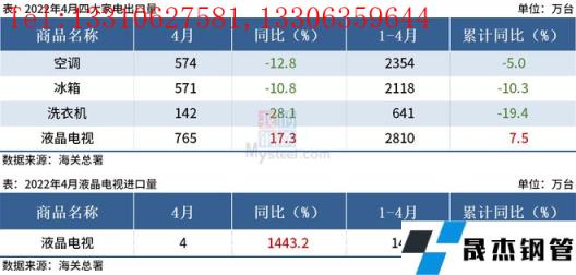 免責聲明:本網站(山東聊城晟杰無縫鋼管廠m.maturesexus.com)刊載的“海關總署:4月中國四大家電出口量出爐,洗衣機同比降28.1%”等均源于網絡,版權歸原作者所有,且僅代表原作者觀點,本文所載信息僅供參考。轉載僅為學習與交流之目的,如無意中侵犯您的合法權益,請及時聯系刪除。本網站刊登此篇文章并不意味著本站贊同其觀點或證實其內容的真實性,我們不對其科學性、嚴肅性等作任何形式的保證。如果侵犯了您的版權,請盡快聯系我們予以撤銷,謝謝合作!