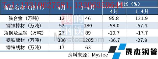 免責聲明:本網站(山東聊城晟杰無縫鋼管廠m.maturesexus.com)刊載的“海關總署:4月中國出口板材336萬噸,同比降36.7%”等均源于網絡,版權歸原作者所有,且僅代表原作者觀點,本文所載信息僅供參考。轉載僅為學習與交流之目的,如無意中侵犯您的合法權益,請及時聯系刪除。本網站刊登此篇文章并不意味著本站贊同其觀點或證實其內容的真實性,我們不對其科學性、嚴肅性等作任何形式的保證。如果侵犯了您的版權,請盡快聯系我們予以撤銷,謝謝合作!