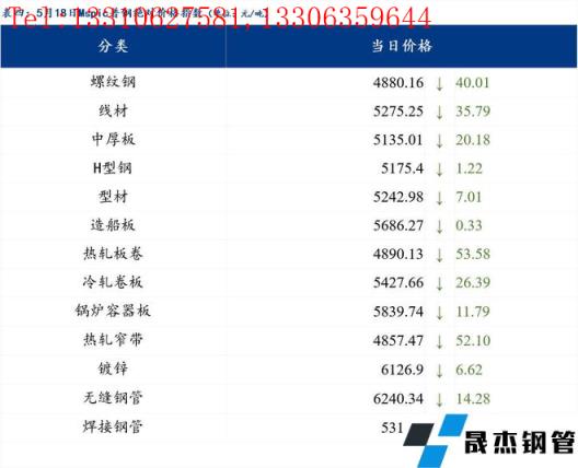 5月18日普鋼絕對價格指數變化:綜合指數5121.58,下跌34.88;螺紋鋼指數4880.16,下跌40.01;線材指數5275.25,下跌35.79;熱軋板卷指數4890.13,下跌53.58;冷軋板卷指數5427.66,下跌26.39;中厚板指數5135.01,下跌20.18。