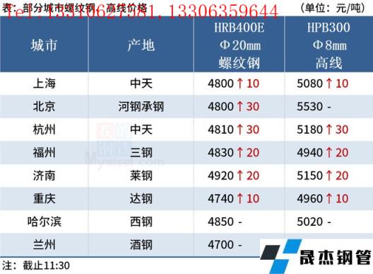 ◎杭州:20日早盤建材市場價(jià)格上漲30,螺沙4800中4780西城4760浙江華宏4690江蘇鑌鑫4690長達(dá)抗震4760線材中天5180亞新5070聯(lián)鑫黃海盤螺5030。(單位:元/噸)
