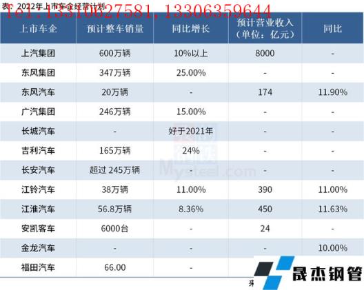 12家上市車企2022年經(jīng)營計(jì)劃具體情況如下: