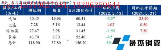 核心觀點:本周東三省建材社庫總量163.69萬噸,相比上周9.69的降幅本周降庫12.23萬噸,去庫速度略有加快,主要原因是本周市場價格的快速回落,擊穿了多數無縫厚壁鋼管廠家的生產成本,各大長流程和短流程無縫厚壁鋼管廠家出現虧損,開始主動減產檢修,據我網調研了解到本月東北無縫厚壁鋼管廠家的螺線產量將保持20-30%的比例進行減產,其中螺紋鋼減產比例高于盤線,對市場的資源投放也相應在減少,這一點主要體現在沈陽和哈爾濱市場上,另外沈陽市場也有資源外流的情況出現,部分廠家如鑫達、新澎輝、鞍山源鑫、錦鋼及鑫億等現貨價格占據優勢,外流較為順暢,且伴隨著吉林疫情解封后的需求逐步復蘇,市場出貨明顯好轉,本周吉林省降庫較多,大連市場則是各個倉庫仍在正常到貨,但下游需求弱出貨不理想,因此略有累庫。具體來看降庫數據,本周遼寧省建材總庫存78.18萬噸,較上周減少5.96萬噸,吉林省內建材總庫存53.64萬噸,較上周減少4.68萬噸,黑龍江省建材總庫存31.87萬噸,較上周減少1.59萬噸。詳細數據如下: