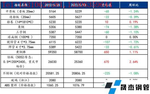 截止2022年5月20日,各原材料當日即時價格以及價格周環比情況如下: