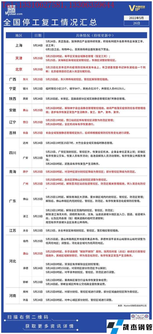 免責聲明:本網站(山東聊城晟杰無縫鋼管廠m.maturesexus.com)刊載的“疫情影響丨全國停工復工情況匯總(5月26日)”等均源于網絡,版權歸原作者所有,且僅代表原作者觀點,本文所載信息僅供參考。轉載僅為學習與交流之目的,如無意中侵犯您的合法權益,請及時聯系刪除。本網站刊登此篇文章并不意味著本站贊同其觀點或證實其內容的真實性,我們不對其科學性、嚴肅性等作任何形式的保證。如果侵犯了您的版權,請盡快聯系我們予以撤銷,謝謝合作!