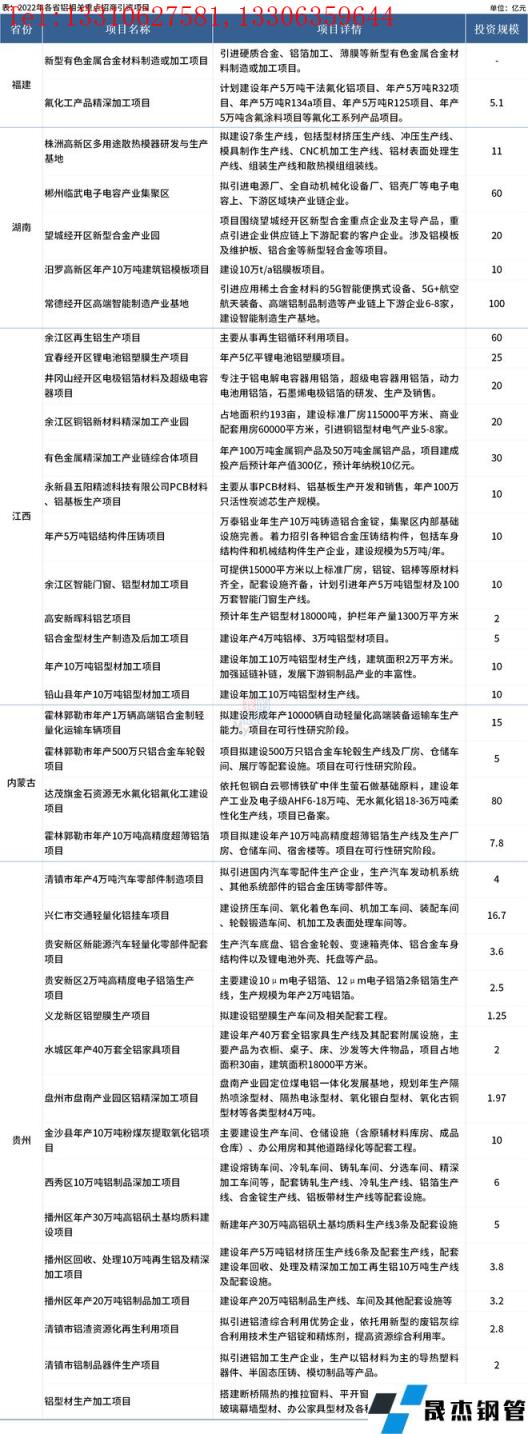 免責聲明:本網站(山東聊城晟杰無縫鋼管廠m.maturesexus.com)刊載的“5省2022年鋁相關重點招商項目清單出爐”等均源于網絡,版權歸原作者所有,且僅代表原作者觀點,本文所載信息僅供參考。轉載僅為學習與交流之目的,如無意中侵犯您的合法權益,請及時聯系刪除。本網站刊登此篇文章并不意味著本站贊同其觀點或證實其內容的真實性,我們不對其科學性、嚴肅性等作任何形式的保證。如果侵犯了您的版權,請盡快聯系我們予以撤銷,謝謝合作!
