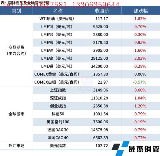 ◎歐洲鋼鐵協會稱,由于能源價格飆升、供應鏈持續中斷以及俄烏沖突影響,歐洲厚壁無縫鋼管消費量今年將同比收縮近2%。