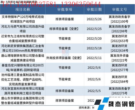 據(jù)不完全統(tǒng)計(jì),2022年5月河北省共批復(fù)鋼鐵相關(guān)項(xiàng)目9個。其中,有4個煉鐵項(xiàng)目備案(變更),4個鋼鐵項(xiàng)目節(jié)能審查和1個外商投資項(xiàng)目備案(變更)。