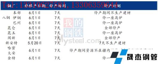 根據2022年5月中旬在烏魯木齊召開的新疆鋼鐵行業健康運行小組會議,后期經疆內各無縫厚壁鋼管廠家共同溝通,確定最終停減產方案:決定停限產開始時間調整為2022年6月1日,停產時間統一調整為7天,后期視情況做出相應調整。
