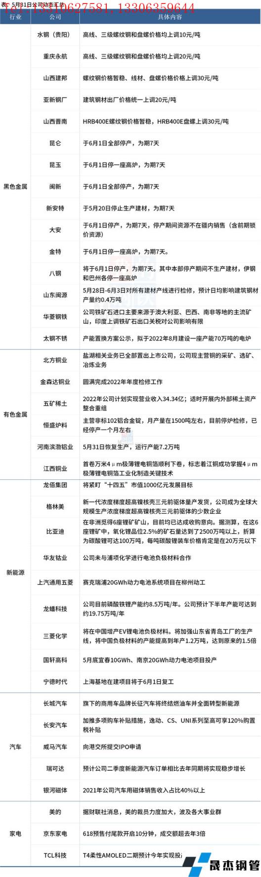 寧德時代上海基地在建項目將于6月1日復(fù)工;五礦稀土2022年公司計劃實(shí)現(xiàn)營業(yè)收入34.34億;欣旺達(dá)擬投入23億元建設(shè)年產(chǎn)3.1億只高性能圓柱鋰離子電池項目;龍佰集團(tuán)將緊盯“十四五”市值1000億元發(fā)展目標(biāo)。具體情況如下: