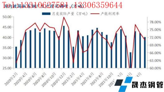 調(diào)研數(shù)據(jù)顯示:據(jù)監(jiān)測(cè)的26家鍍錫板生產(chǎn)企業(yè)中,共計(jì)49條產(chǎn)線(xiàn),2022年5月份產(chǎn)能利用率71.02%,月環(huán)比下降2.66%,同比下降5.08%;5月鍍錫板實(shí)際產(chǎn)量40.14萬(wàn)噸,月環(huán)比減少2萬(wàn)噸,同比減少3.32萬(wàn)噸;另外,對(duì)國(guó)內(nèi)重點(diǎn)鍍鉻生產(chǎn)企業(yè)調(diào)研數(shù)據(jù)顯示,5月份鍍鉻板產(chǎn)量共計(jì)7.32萬(wàn)噸。