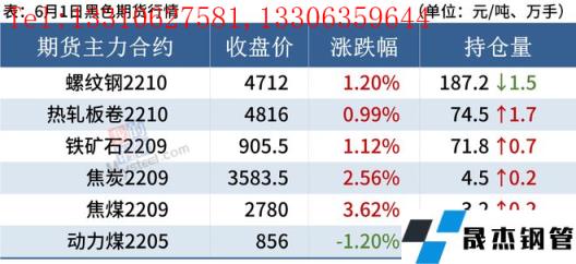 熱軋板卷:6月1日,全國24個主要城市4.75mm熱軋板卷均價4885元/噸,較上個交易日上漲2元/噸。現貨市場早盤報價小幅探漲,市場成交偏弱,午后期卷價格延續漲勢,市場信心有所提振,但整體成交未見明顯放量,商家情緒一般。總體來看,期卷價格延續昨日漲勢,隨著各地疫情有所好轉,以及華東地區解封復工復產加快,或為市場注入良好預期,帶動價格支撐力度。預計2日全國熱軋板卷或將震蕩趨強運行。