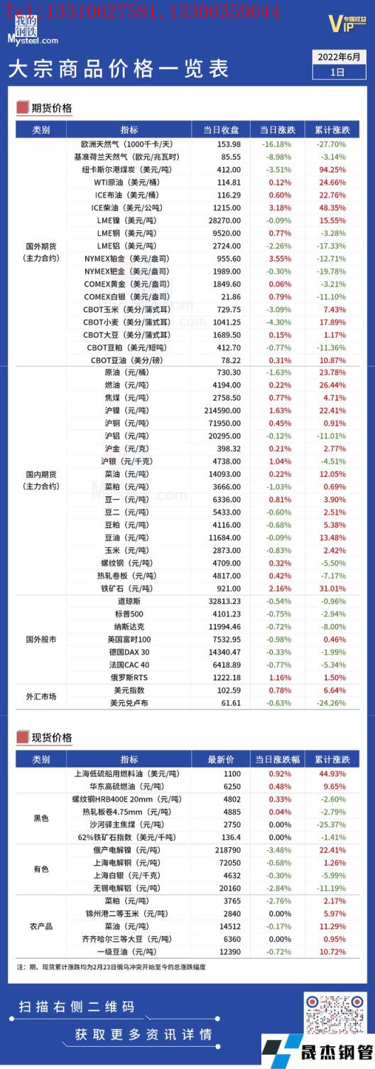 免責聲明:本網站(山東聊城晟杰無縫鋼管廠m.maturesexus.com)刊載的“俄烏局勢丨大宗商品價格一覽表(6月1日)”等均源于網絡,版權歸原作者所有,且僅代表原作者觀點,本文所載信息僅供參考。轉載僅為學習與交流之目的,如無意中侵犯您的合法權益,請及時聯系刪除。本網站刊登此篇文章并不意味著本站贊同其觀點或證實其內容的真實性,我們不對其科學性、嚴肅性等作任何形式的保證。如果侵犯了您的版權,請盡快聯系我們予以撤銷,謝謝合作!