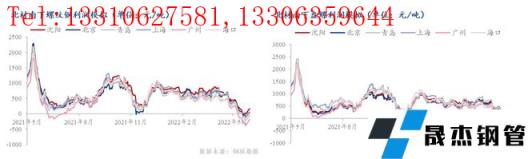 從價(jià)格變化來(lái)看,華南區(qū)域受汛期影響、價(jià)格表現(xiàn)相對(duì)偏弱,上海受疫情大規(guī)模封控影響、資源流動(dòng)性低,在價(jià)格下跌階段表現(xiàn)出了較強(qiáng)的抗跌性,北京則因?yàn)椴糠謪^(qū)域疫情封控影響,資源出現(xiàn)了區(qū)域內(nèi)不平衡流動(dòng),導(dǎo)致可流動(dòng)資源跟隨性下跌后帶動(dòng)市場(chǎng)價(jià)格整體趨弱運(yùn)行。但不管從何角度來(lái)看,5月份無(wú)縫厚壁鋼管廠家利潤(rùn)或受售價(jià)大幅下跌影響出現(xiàn)較大幅度萎縮。