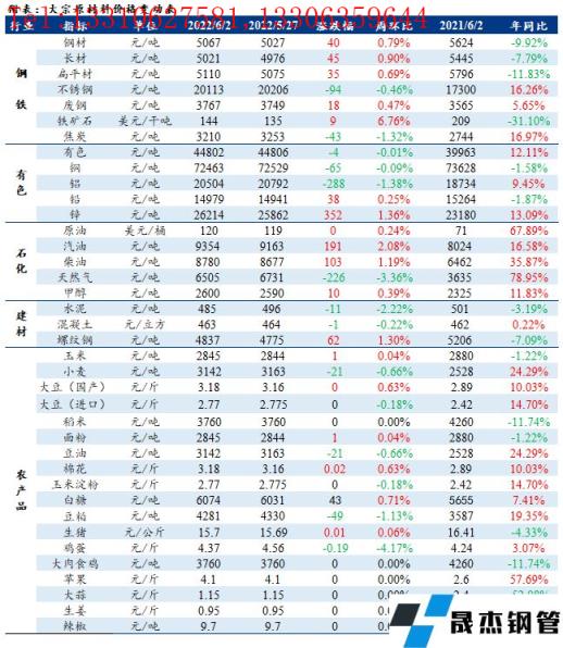 免責聲明:本網站(山東聊城晟杰無縫鋼管廠m.maturesexus.com)刊載的“周報:大宗工業原材料、能源及農產品價格周報(5.30-6.02)”等均源于網絡,版權歸原作者所有,且僅代表原作者觀點,本文所載信息僅供參考。轉載僅為學習與交流之目的,如無意中侵犯您的合法權益,請及時聯系刪除。本網站刊登此篇文章并不意味著本站贊同其觀點或證實其內容的真實性,我們不對其科學性、嚴肅性等作任何形式的保證。如果侵犯了您的版權,請盡快聯系我們予以撤銷,謝謝合作!