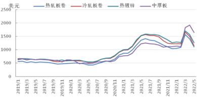圖5 2019-2022年亞洲扁平材市場價格走勢圖