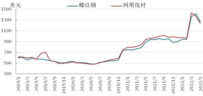 圖6 2019-2022年亞洲螺紋鋼價格走勢圖