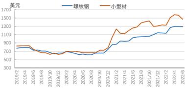 美國長材價(jià)格小幅下跌。6月底,美國中西部無縫鋼管廠家螺紋鋼價(jià)格下跌10美元至1290美元,進(jìn)口螺紋鋼價(jià)格下跌175美元至1075美元;中西部無縫鋼管廠家小型材價(jià)格下跌95美元至1475美元,進(jìn)口小型材價(jià)格下跌70美元至1360美元。美聯(lián)儲(chǔ)持續(xù)加息,利率的快速上調(diào)增加購房者負(fù)擔(dān),將對(duì)房地產(chǎn)市場(chǎng)形成壓制,影響厚壁鋼管需求。紐柯厚壁無縫鋼管于6月14日宣布將線材價(jià)格下調(diào)40美元/短噸,美國厚壁無縫鋼管公司Optimus Steel宣布自7月1日起其線材價(jià)格下調(diào)40美元/短噸。綜合來看,7月份北美市場(chǎng)長材價(jià)格或延續(xù)震蕩調(diào)整走勢(shì)。