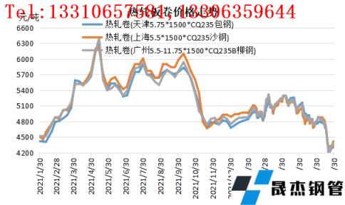 一季度熱卷市場呈現震蕩上漲行情,雖期間包含春節以及冬奧會等情況,但受國家跨周期提前發力、充足發力等調控政策利好,春節節后厚壁鋼管產業鏈上下游價格出現上漲。特別是3月初受烏俄戰爭影響導致熱卷出口需求預期增加,市場呈現急速上漲行情,上海、樂從等部分地區熱卷成交最高收于5300元/噸上方;后期隨著烏俄局勢緩和,市場重回基本面,成交也隨之跌破5000元/噸關口。二季度熱卷市場步步下行,市場關注點從強預期轉變為弱現實,供需端影響權重明顯加重。雖政策面不斷發布利好,但終端需求持續弱勢,疊加疫情多點爆發仍在持續,以及物流運輸不暢等因素影響區域間資源流通,熱卷市場利空因素仍占據主導。特別是庫存不斷攀升,也在一定程度上拖累熱卷市場跌至半年以來低谷。