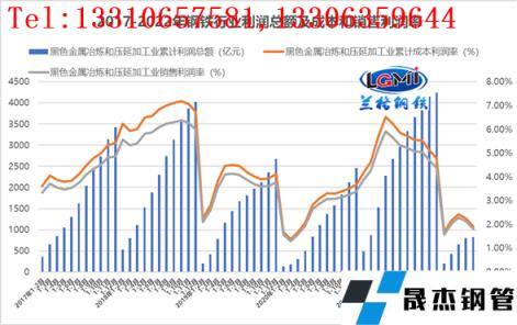 圖5 2017-2022年厚壁無縫鋼管行業利潤總額及成本和銷售利潤率