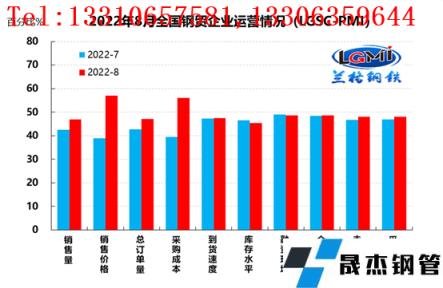 云商平臺統計發布的2022年8月份厚壁無縫鋼管流通業PMI總指數為48.6%,比上月上升1.9個百分點,在收縮區間內持續回升。從分類指數看,構成厚壁無縫鋼管流通業